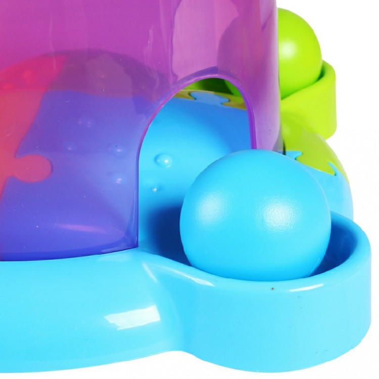 .+ Bộ đồ chơi đi kèm 4 bóng nhựa nhỏ, có màu tương ứng với 4 miếng ghép ở bàn đế. Khi bé thả bóng từ trên đỉnh tháp xuống, bóng nhựa sẽ đi theo đường rãnh trượt và các lỗ rỗng trên đỉnh mỗi cốc để chạy xuống bàn đế và chui vào giá đỡ. Bé sẽ thật thích thú khi màu trái bóng mình vừa thả trùng khớp với màu giá đỡ mà nó chui vào.