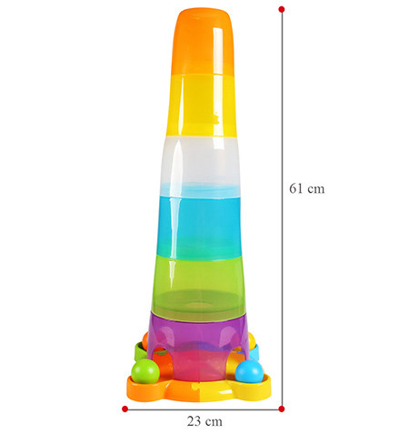 Với thiết kế sáng tạo, tháp cốc còn tích hợp tính năng thả bóng đầy thú vị. Bé vui chơi và ngắm nhìn sự chuyển động vui nhộn của trái bóng từ trên đỉnh tháp xuống dưới chân tháp rồi chui ra đúng lỗ mang màu sắc của nó. Sản phẩm sẽ là món quà hoàn hảo cho bé trong giai đoạn phát triển.
