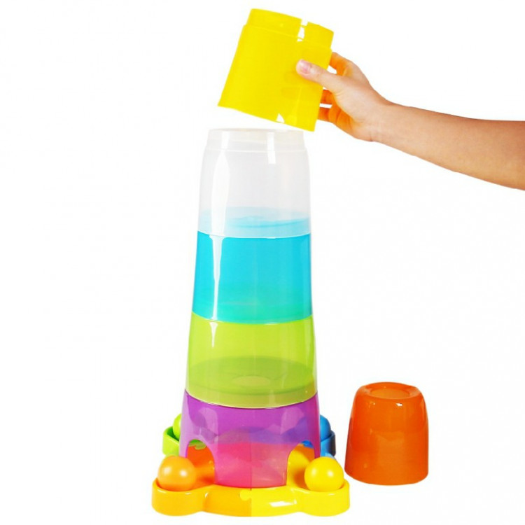 Bộ đồ chơi thích hợp cho bé từ 1 tuổi trở lên, bao gồm những chiếc cốc nhựa rực rỡ có kích thước lớn dần đều để bé vận dụng tư duy, suy luận và xếp chúng lên thành tháp cao, qua đó bé còn tập nhận biết được màu sắc, sự to - nhỏ và rèn luyện các kỹ năng khéo léo.
